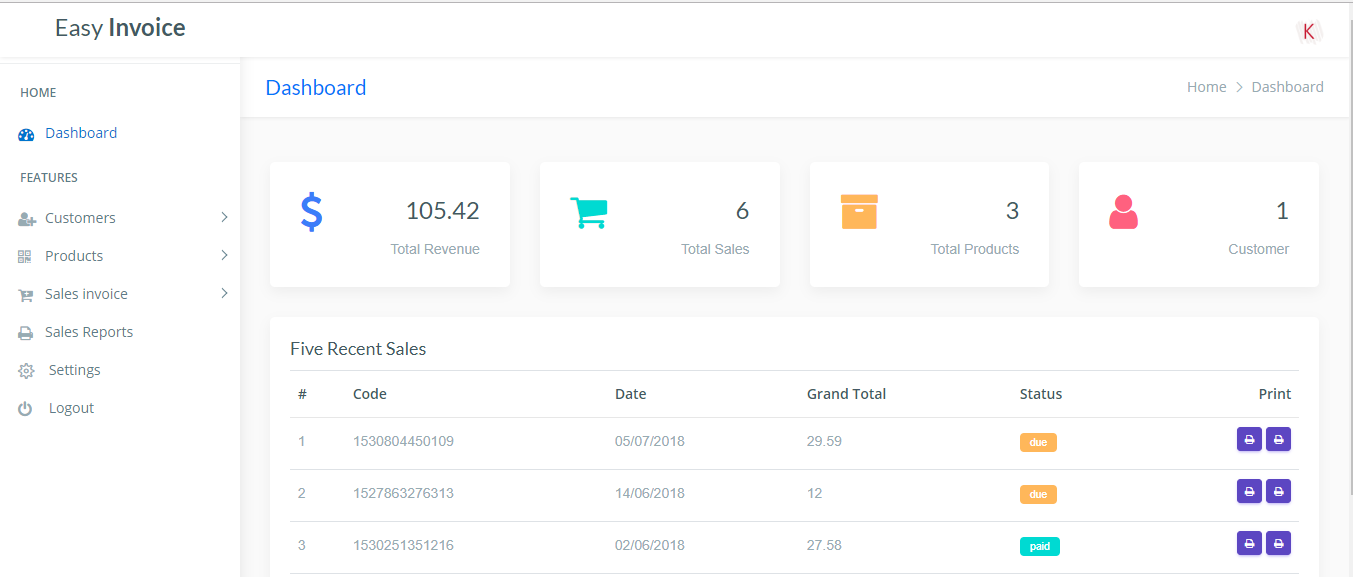 For small businesses, it can be easily configureable to setup company, products. then it can manage customer and sales invoice and track sales and print invoices for customers