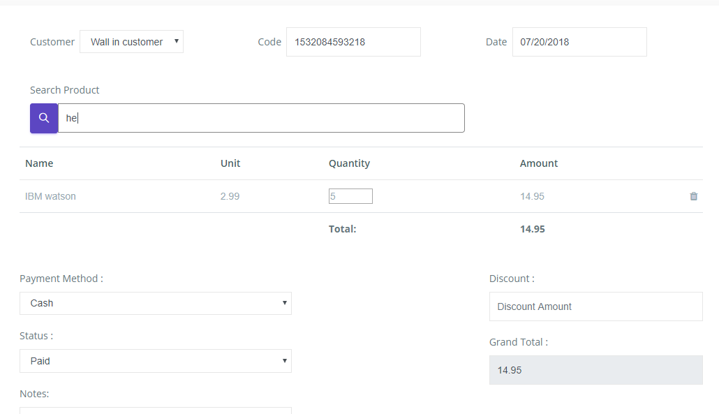 Easily manage create new sale just by searching though select products and the amount of quantity